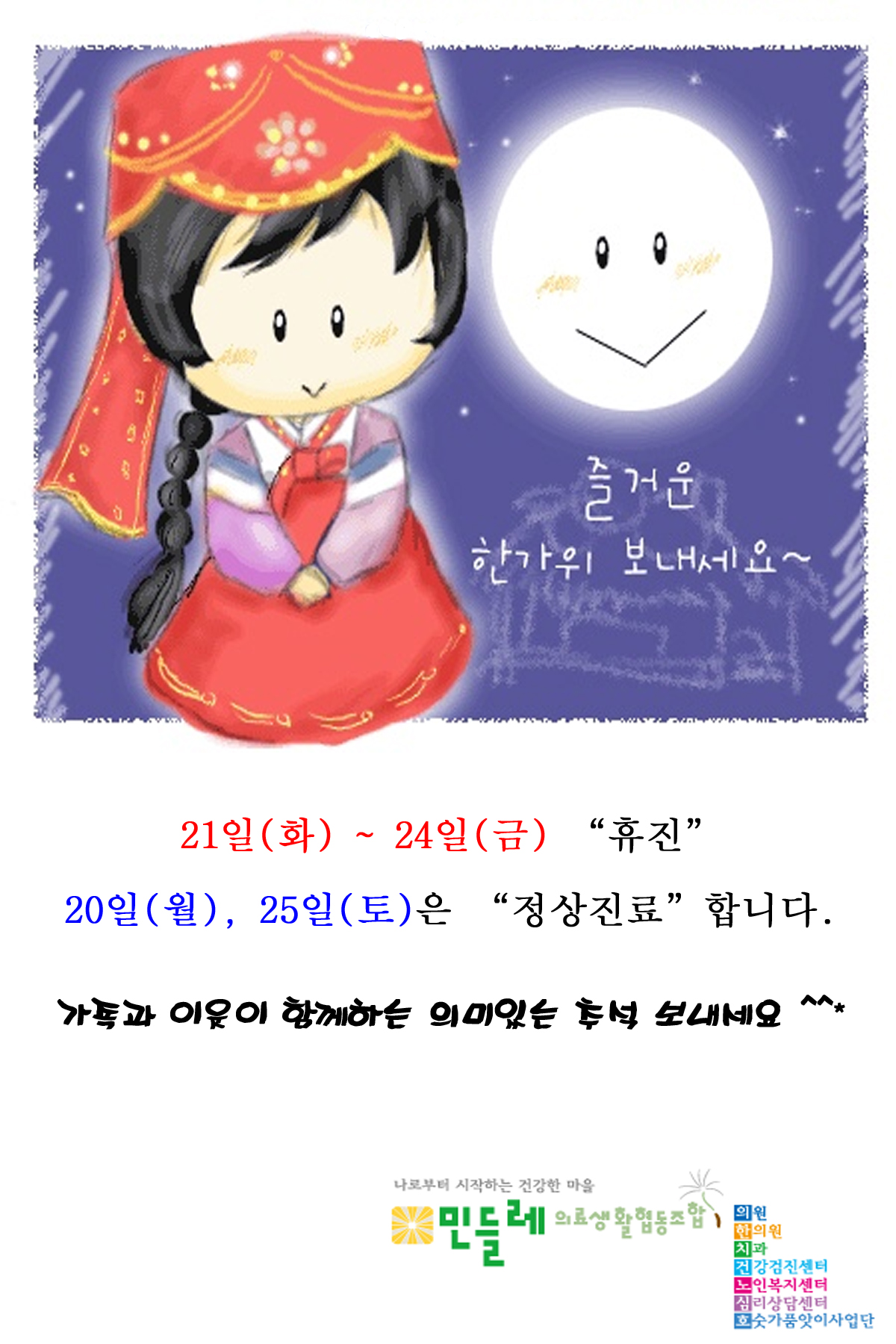 | 제목 | 추석연휴 민들레의료기관 이용안내 |