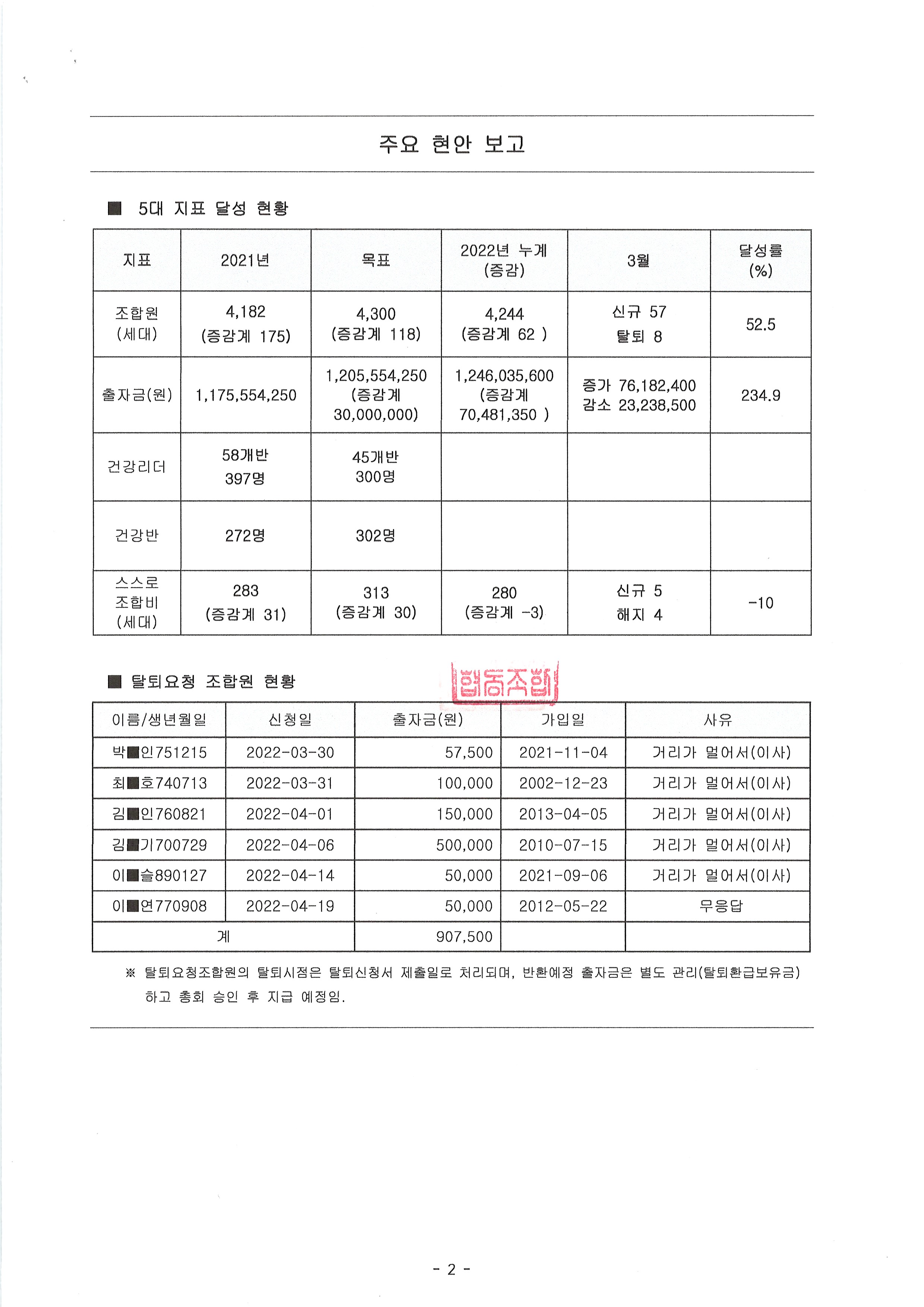 탈퇴 및 출자금반환 신청