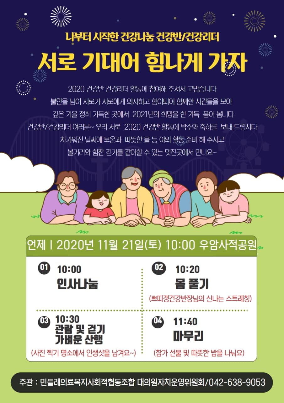 2020년도 건강반/건강리더 [서로 기대어 힘나게 가자] 걷기 모임